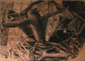 Tekening in zwart/wit, h. 118 cm, b. 154 cm, ges. l.o. Jac Maris Heumen