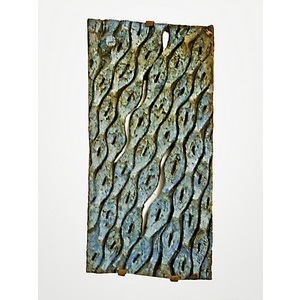 Keramisch reliëf met lichtblauwe glazuur, h. 71 br. 35 cm, ges. Jac Maris