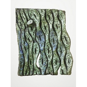 Keramisch reliëf met groene en blauwe glazuur, h. 45 br. 35 cm