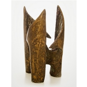 Duidelijk is we dat hij, evenals in de abstractie catnr. 222, naar nieuwe abstracte vormen zocht: drie motieven, verbonden binnen de contouren van een cilinder.