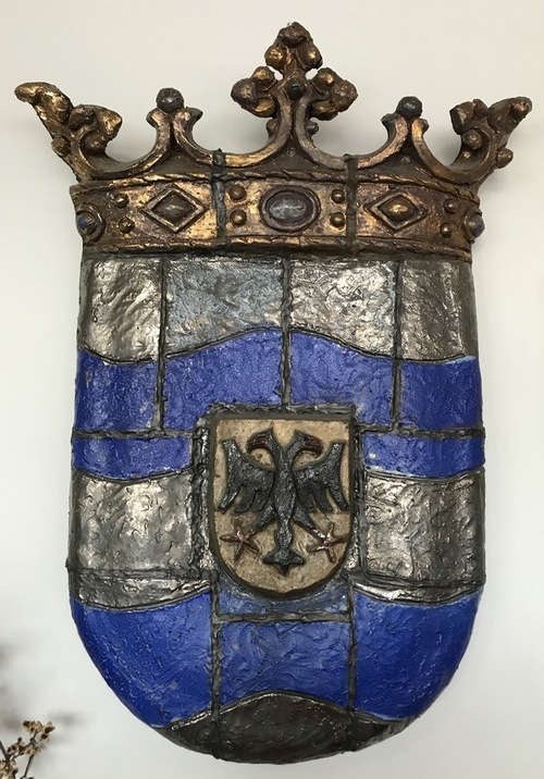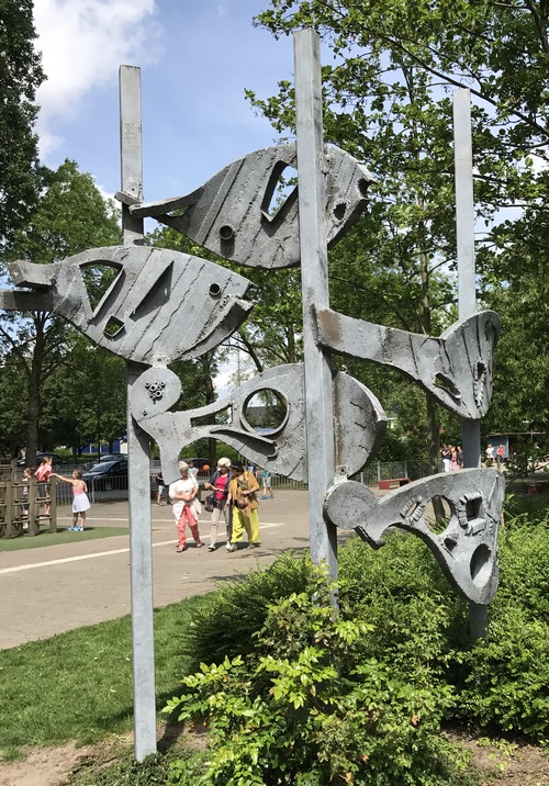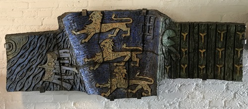 | Gemeentewapen in gemeentehuis | Reliëf in Basisschool 'De Leeuwenkuil' | Staalconstructie 'Vissen' bij Basisschool 'De Leeuwenkuil' |