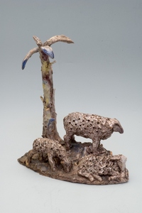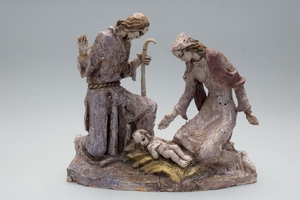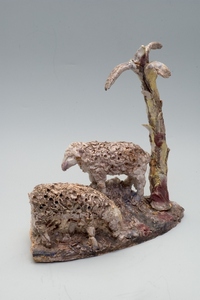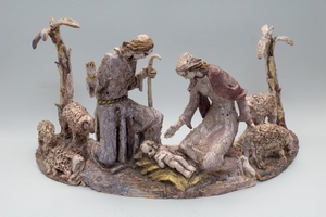 Tenslotte was er nog een kerstgroep, bestaande uit Jozef, Maria en het kindje Jezus in de kribbe (zie kunstkaart Winkel) geflankeerd door schaapjes.
