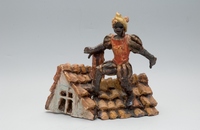 In de sinterklaastijd verscheen Sinterklaas te paard, geflankeerd door twee zwartepieten op een dak.
