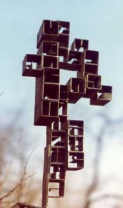 Ontwerp van flatgebouw Staal, h. ca. 60 cm Deze staalconstructie heeft volgens een inventarislijst als titel Ontwerp van flatgebouw. Het is een van de ontwerpen van de Rabobank te Nijmegen. Het wordt gedateerd tussen 1960-1966.